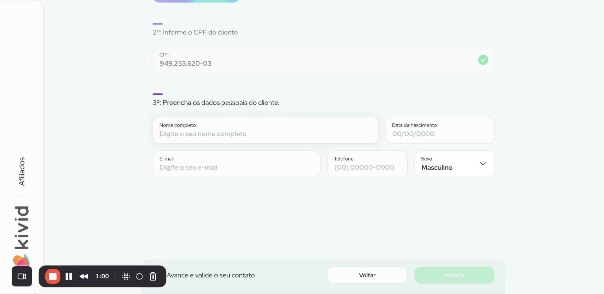 O cliente receberá um e-mail de confirmação com instruções para acessar o app Kivid.