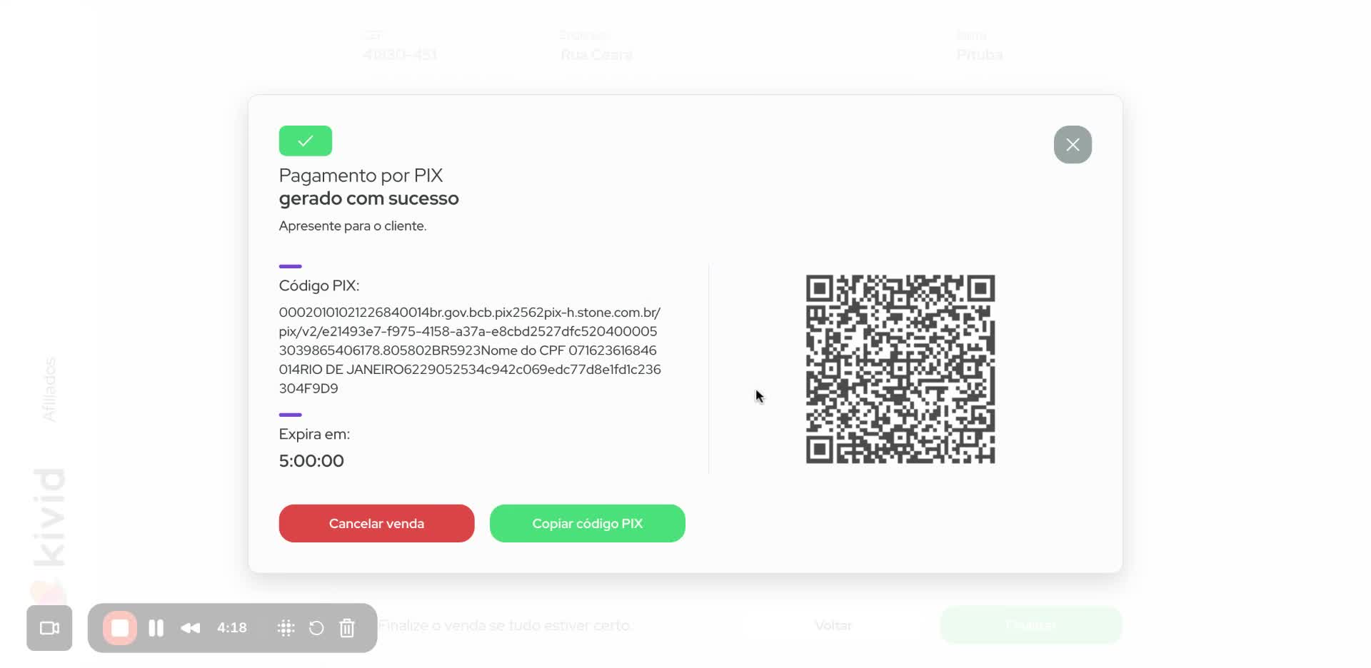 8. Envio do Link ou QR Code de Pagamento 1:23